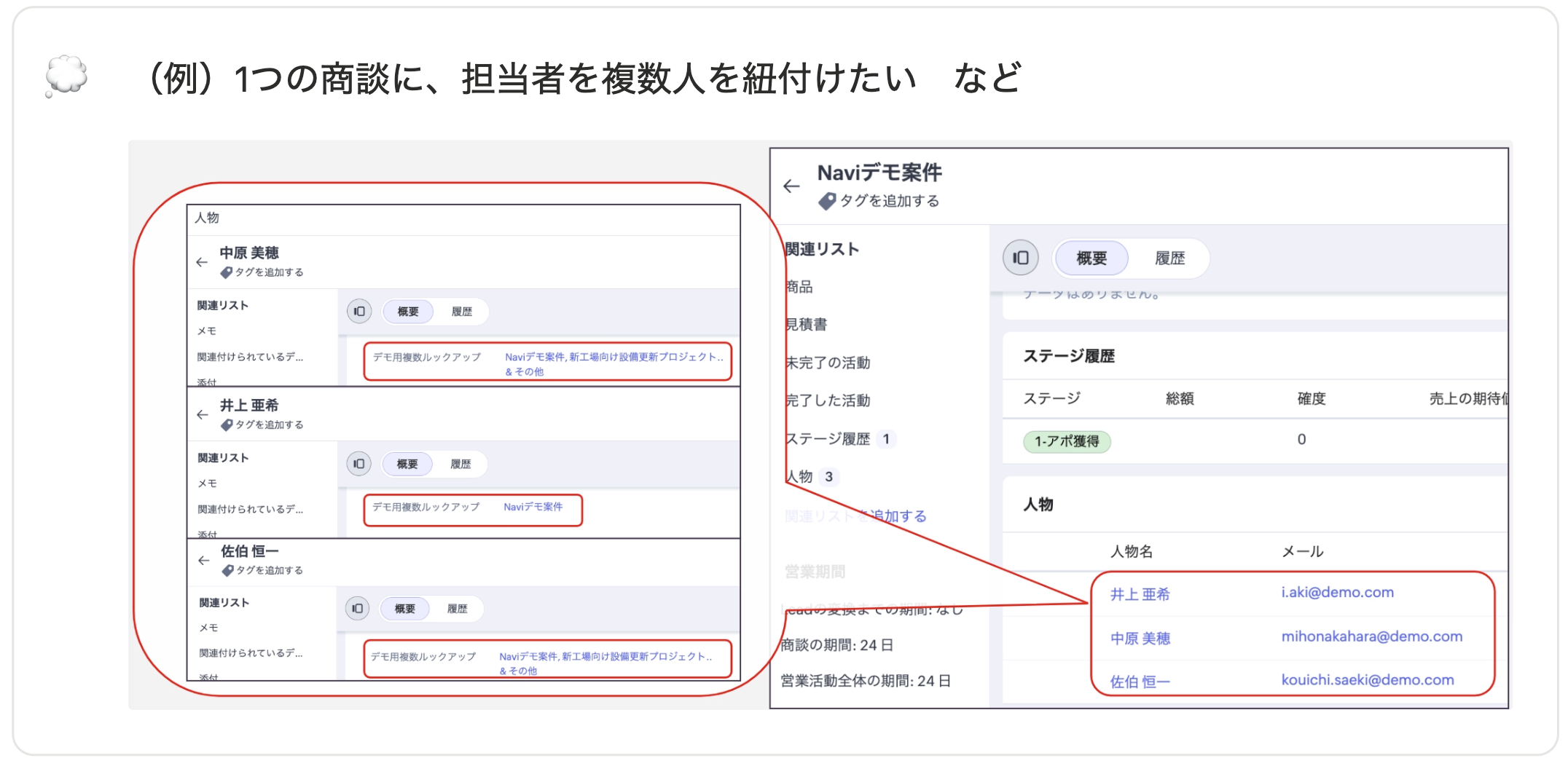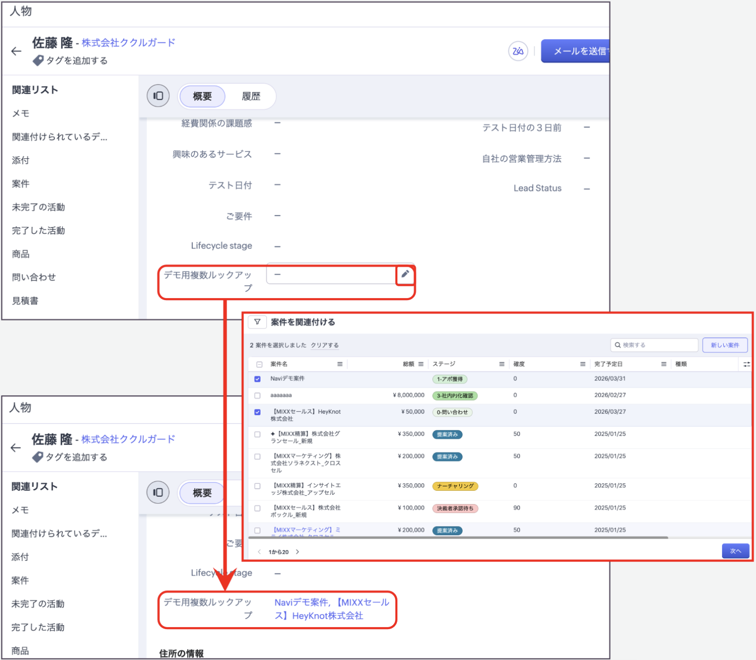 ↑複数ルックアップにより、佐藤隆さんに複数の案件を紐づけることができました。
