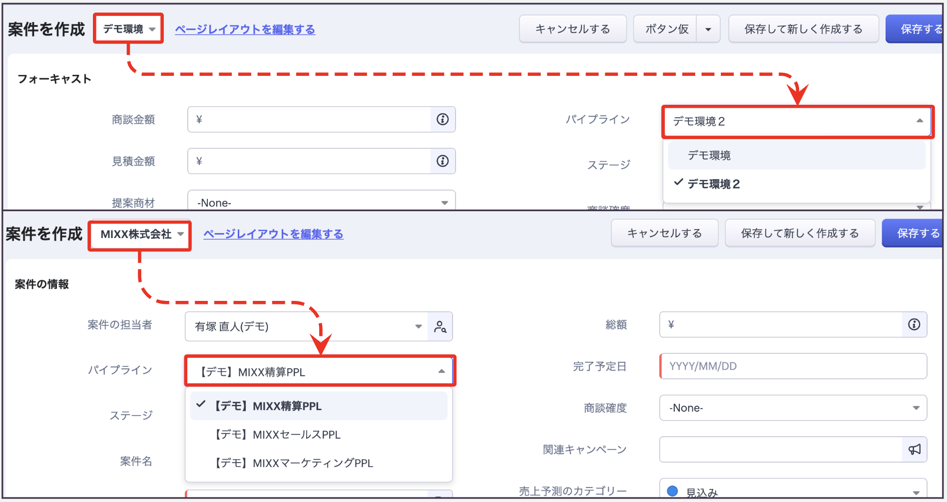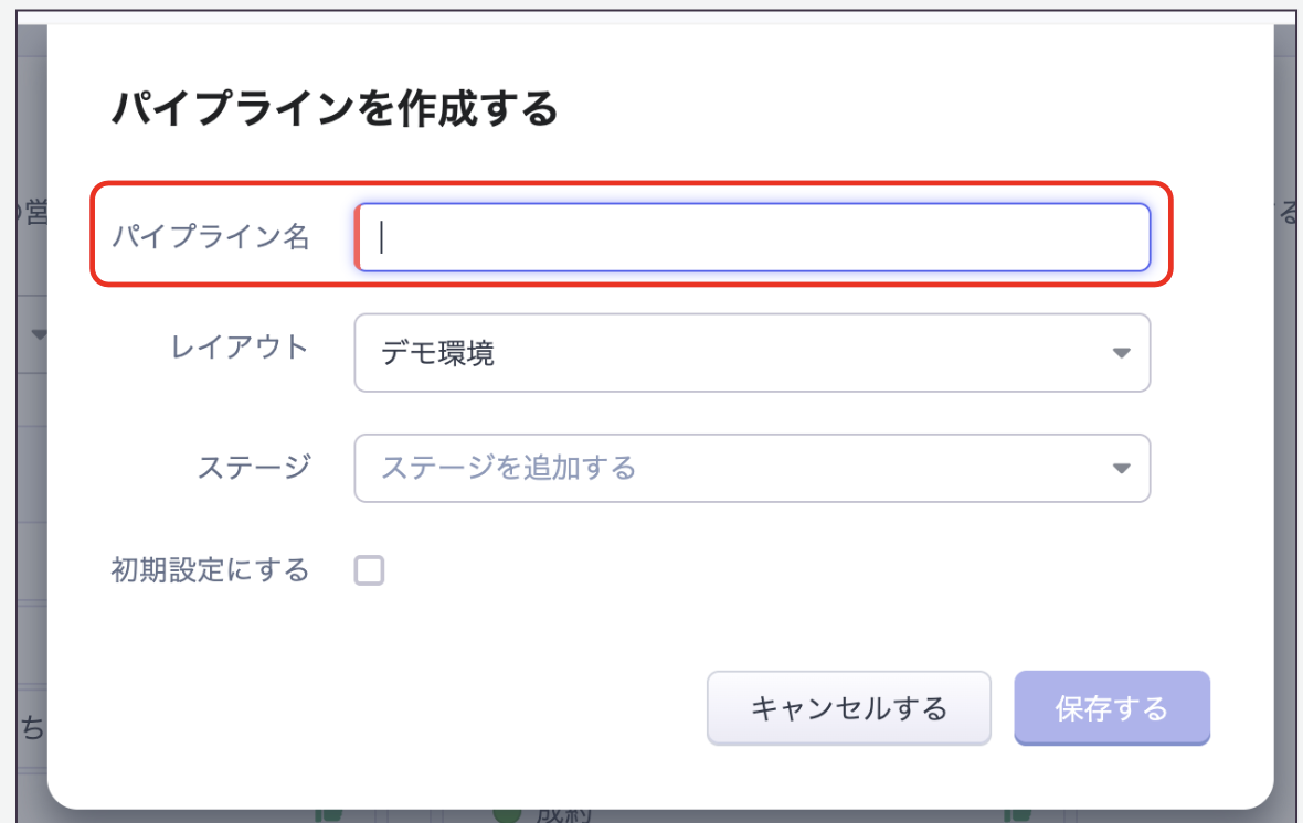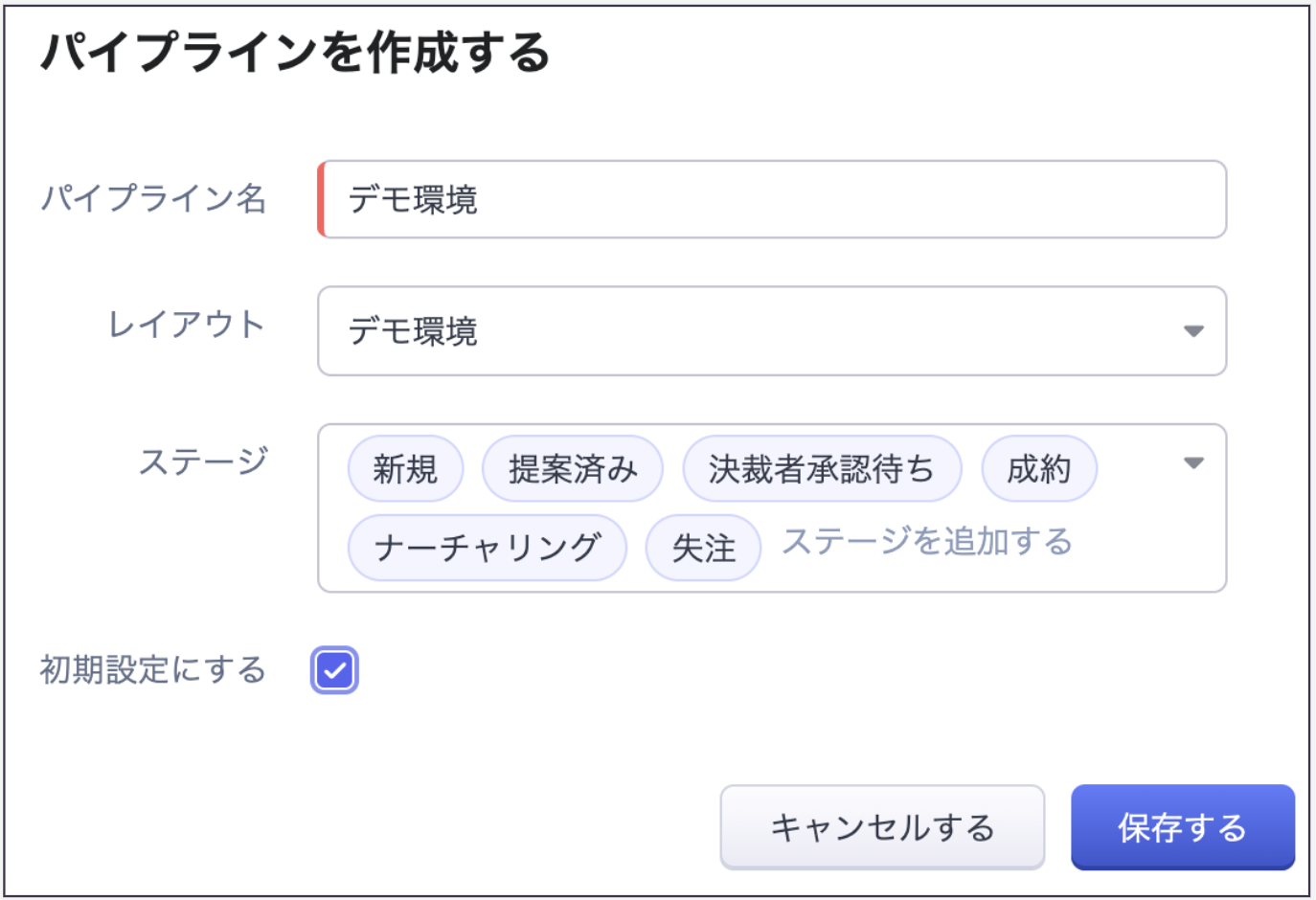 パイプラインを運用するには、案件を作成する際にレイアウトを選択する必要があります。
