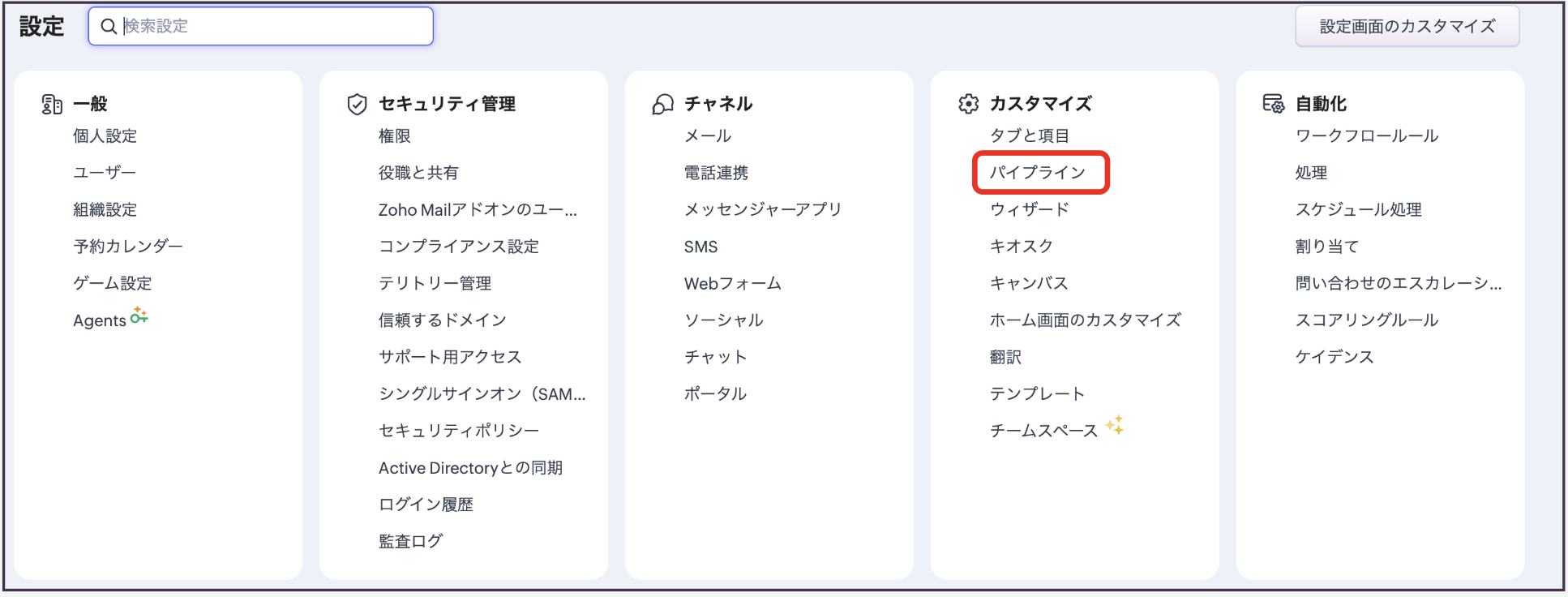 Zoho CRMでは、パイプラインを複数作成することができます。