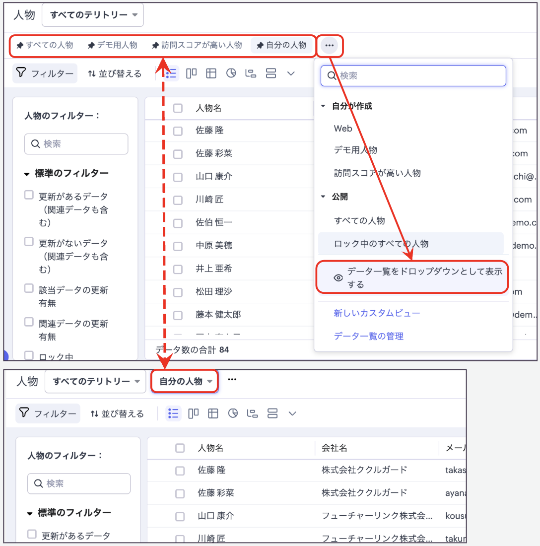💡ビューの表示方法は、タブ形式とドロップダウン形式から選べます。