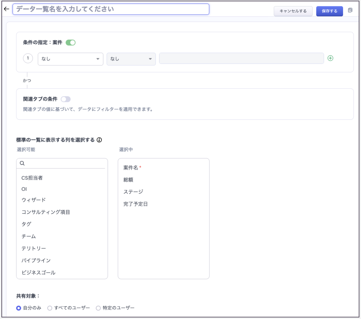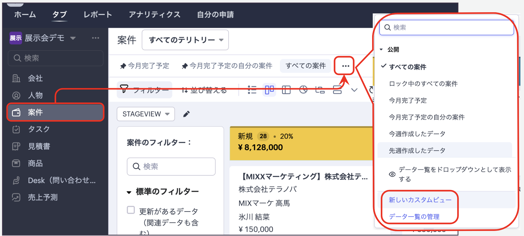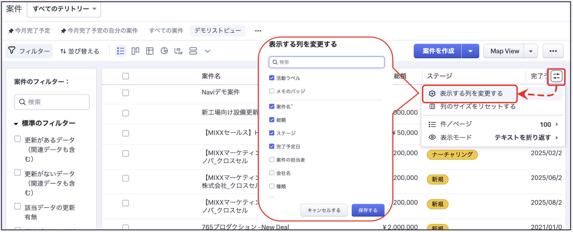 カスタムビューを活用すれば、自分や自社の目的に合わせた一覧画面を作成でき、必要な情報を整理して確認できるようになります。