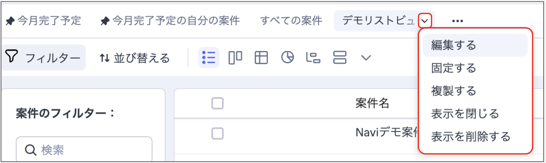 カスタムビューは、作成後に編集や複製を行うことができます。