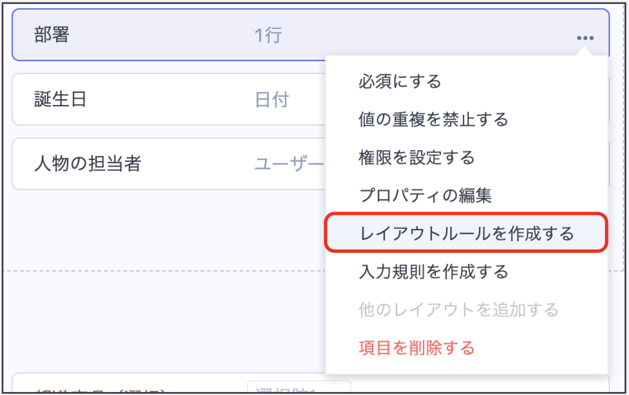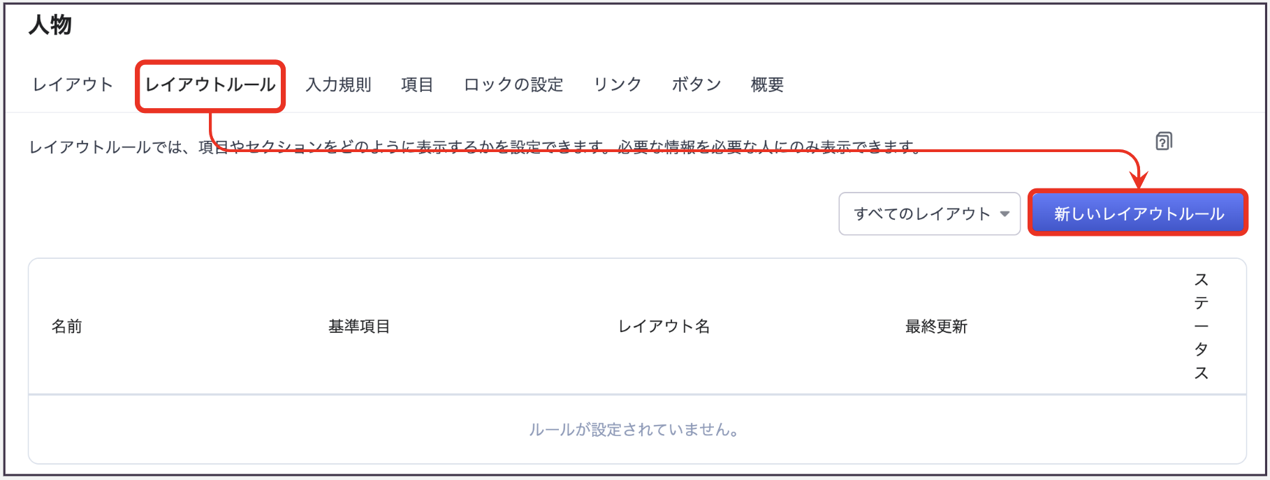・レイアウトやレイアウトルールの作成・編集・削除には「レイアウトと項目の管理」権限が必要です。
