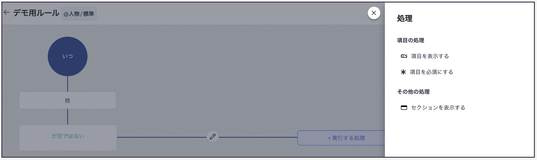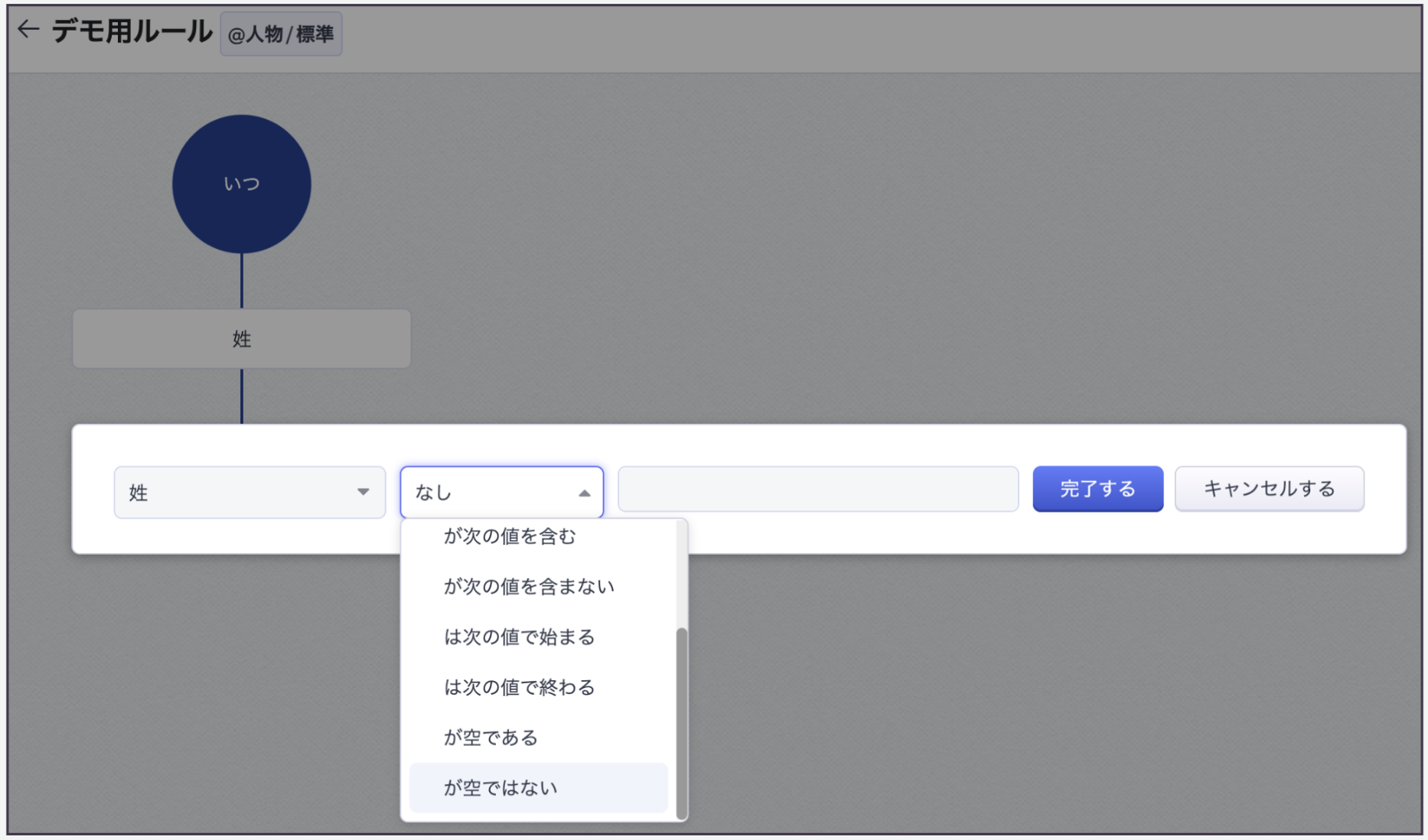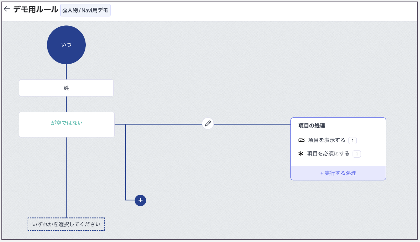 例えば、「姓を入力した場合、名を必須項目にする」というルールを設定する場合、基準項目として選択するのは「姓」になります。